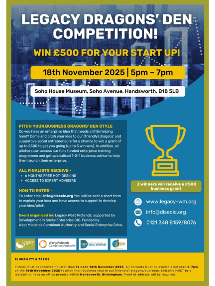 📩 Enter by 12 noon, 14th Nov 2025 Must live or have an office in Handsworth, Birmingham (proof required).
