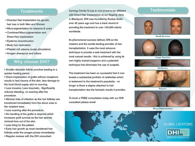 Exciting news! Synergy Dental are now proud to be affiliated with DHI Global – Direct Hair Implantation! For more information, read on