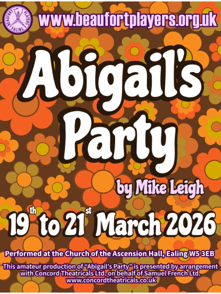 Get ready to top up your Babycham and step back into the 1970s… Beaufort Players invite you to a deliciously awkward evening with ABIGAIL’S PARTY - the cult classic comedy of manners that defined suburban aspiration.