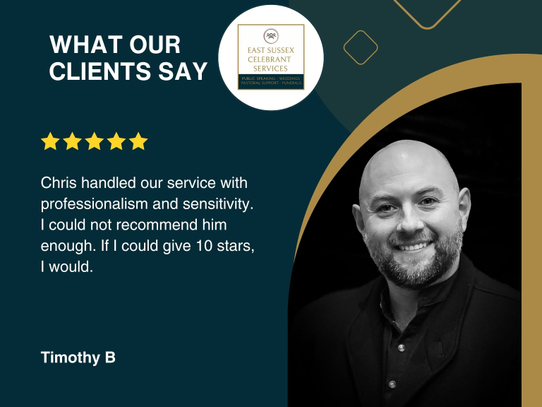 East Sussex Celebrant Services is about more than ceremonies. Alongside his celebrant work, Christopher offers confidential pastoral guidance, ethical leadership coaching and emotional support for professionals, business owners and community leaders. His approach blends calm insight with practical advice, helping people reflect, recover and move forward when life or work feels heavy. Whether you are grieving, overwhelmed or simply in need of perspective, Christopher offers space to talk openly and find clarity without judgement.