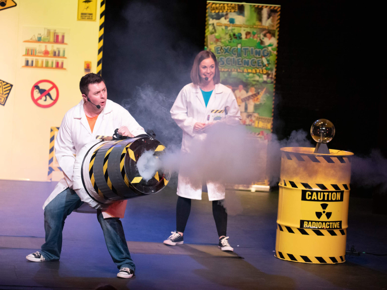 Young audiences can expect to witness volcanic eruptions, smoke blasters, and even a vacuum cleaner transformed into a missile launcher, all delivered in a fast-paced production packed with “wiz, bang, pop… and splurt!”