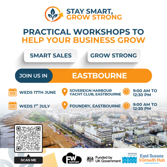 Stay Smart, Grow Strong is a fully funded business support programme from the East Sussex Growth Hub, delivered by Freedom Works.