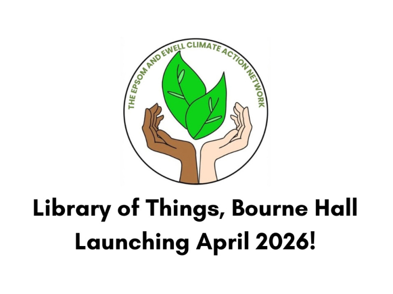 Epsom's Library of Things is run by Epsom and Ewell Climate Action Network, in partnership with Ewell Library, Bourne Hall and supported by Epsom and Ewell Borough Council and Epsom Repair Cafe.