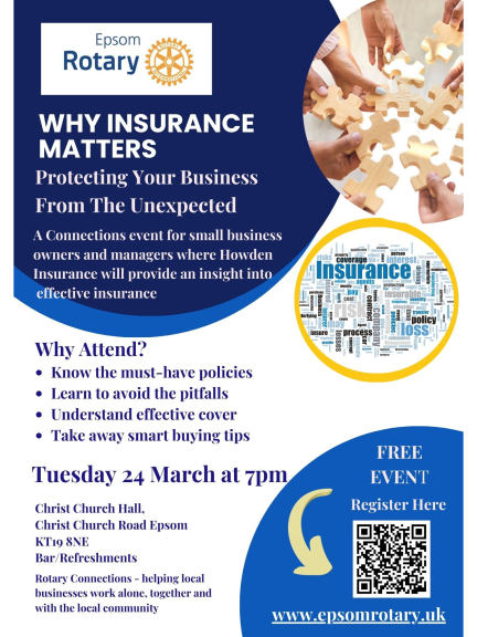 Great talk about Insurance needs for small businesses in Epsom and Ewell. Come along to Christ Church, Epsom at 7pm on Tuesday night! Book at https://rotary-ribi.org/clubs/page.php?PgID=997516...