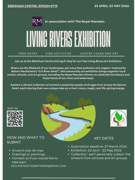 Rivers are the lifeblood of our landscapes, yet many face pollution and neglect. Inspired by Robert Macfarlanes's "Is A River Alive?", this community art exhibition brings together local artists, schools, and art groups, including the Royal Marsden school, to celebrate the beauty and importance of our rivers and waterways.