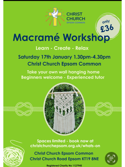 A 3 hour workshop designed for beginners to learn the basics of Macrame from and experienced crafter and tutor. Spaces limited to ensure personal tuition.
