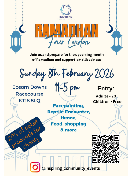 Founded as a grassroots community initiative, Ramadhan Fair London was created to provide an inclusive space for families to connect and celebrate Ramadhan, while also supporting local small businesses and community causes. The event is not run for profit and is organised and delivered by a small dedicated team of volunteers through Inspiring Community Events.