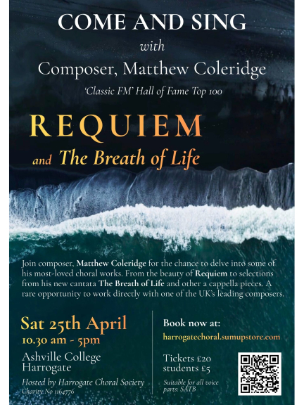 Join Matthew Coleridge for the chance to delve in his most-loved choral works. From the beauty of Requiem to selections from his new cantata The Breath of Life and other a cappella pieces. This is a rare opportunity to work directly with one of the UK's leading composer.