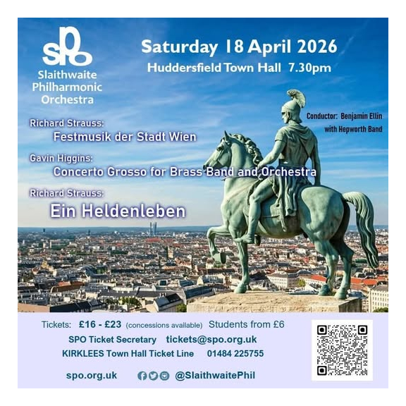 Slaithwaite Philharmonic Orchestra and Hepworth Band join forces for what promises to be a memorable evening of music at Huddersfield Town Hall.