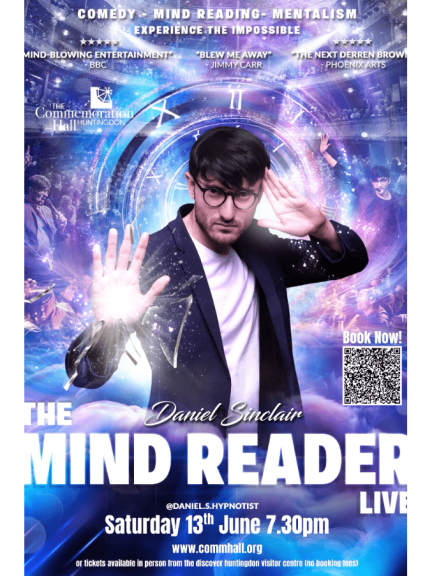 A mind reading and mentalism show that will leave you on the edge of your seats. Expect Derren Brown-style mind games, comedy and full-on psychological wonder as Daniel reads volunteers’ minds and makes astonishing predictions live on stage.