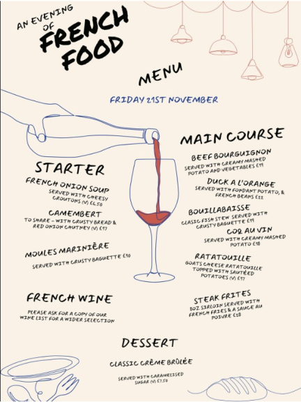 Join us for an evening of French cuisine on Friday 21st November at The White Horse 🇫🇷 🥩🧀🍷🥖