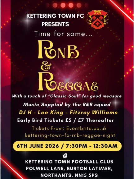 RnB, Reggae & Classic Soul Night at Kettering Town FC