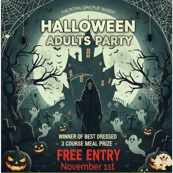 Ready for a frightfully good time? Get ready for our Adults-Only Spooky Halloween Party at The Royal Oak Naseby!