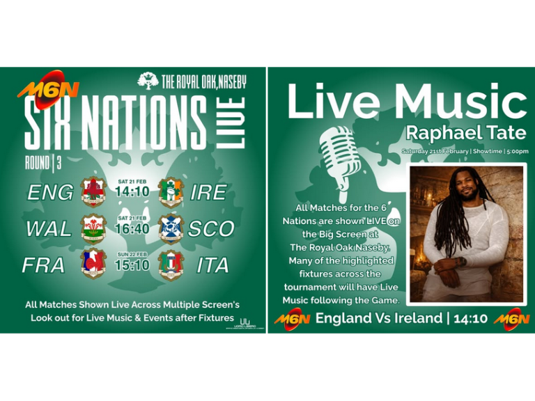 Watch the third round of Men’s Six Nations fixtureat The ROYAL OAK, NASEBY. After an amazing weekend last week, we have it all again this weekend and more.....Check out our story for last weeks action. As we have live sport and music this weekend.