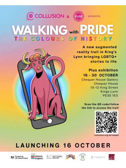 You will be guided by an old friend of Collusion, Vinegar Tom, who some of you may remember from Kinema of Dreams! But this is more than just a game. It’s a celebration of youth creativity and collaboration. Alongside the trail, visit the exhibition at Chequer House Gallery that reveals the making of the project – from the first sparks of research to the final digital designs. Developed with local young creatives from our FUSE programme ages 16 30, this behind-the-scenes look showcases how imagination, history, and technology came together to create a new kind of storytelling experience for King’s Lynn.