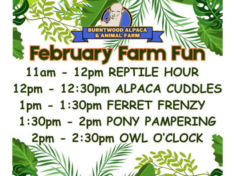 Head to Burntwood Alpaca & Animal Farm for a full day of animal adventures!