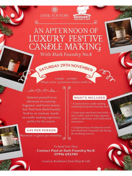 Join Dark Foundry No.8 at Bradshaw’s Farm Shop & Café for a cozy, creative afternoon of candle crafting! 🕯️💫