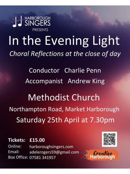 Inspired by the phrase 'In the Evening Light', conductor Charlie Penn has searched high and low for beautiful pieces so that the choir can present their choral reflections at the close of day. Charlie’s selection includes well-known tunes like ‘Loch Lomond’ and the Spiritual ‘Deep River’, as well as classical offerings such as Rheinberger’s Evening Song and Charles Wood’s ‘Music, when soft voices die’, right through to exquistite modern pieces such as Tichele’s ‘Earth Song’ and Whitacre’s ‘A boy and a girl’ which the choir enjoy singing very much.