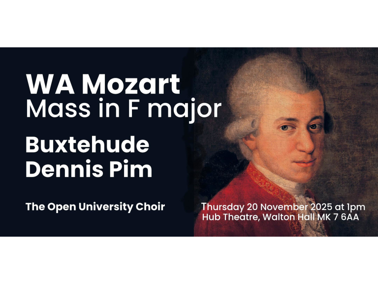 The Open University Choir's autumn concert features as its main work Mozart’s Mass in F major, which was written in 1774 when the composer was just 18. Though the piece is necessarily short to meet the requirements of his employer, the Mass is full of musical interest and invention.