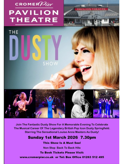 The Dusty Show starring the sensational Louise Anne Masters accompanied by The Echoes Live Band and The Breakaway Singers, will take you on a journey of music magic as they perform non stop hits covering songs from the early pop to the Memphis era.