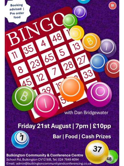 Come and join us for an evening of bingo fun with Dan Bridgewater.