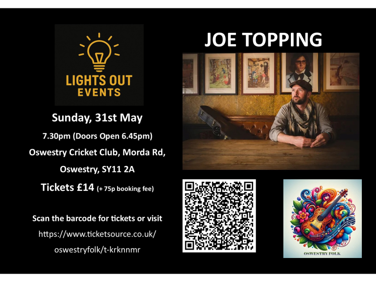 Described by Sir Tom Jones as “a Weaver of Dreams”, Joe Topping is a folk singer and multi instrumentalist from Liverpool whose singing and guitar playing regularly moves listeners to tears. His charismatic stage presence and engaging stories have entertained audiences all over the country and all across Europe, including live sessions on BBC Radio 2, ITV Television, The National Film Awards and a showcase at SXSW in Texas.