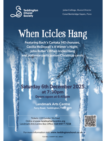 Teddington Choral Society and its Musical Director, Julian Collings are delighted to announce their forthcoming Christmas concert: "When Icicles Hang".