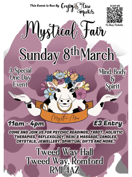 Featuring diverse stalls with crystals, tarot, psychic readings, holistic therapies, handmade jewellery, spiritual art & gifts and much much more.