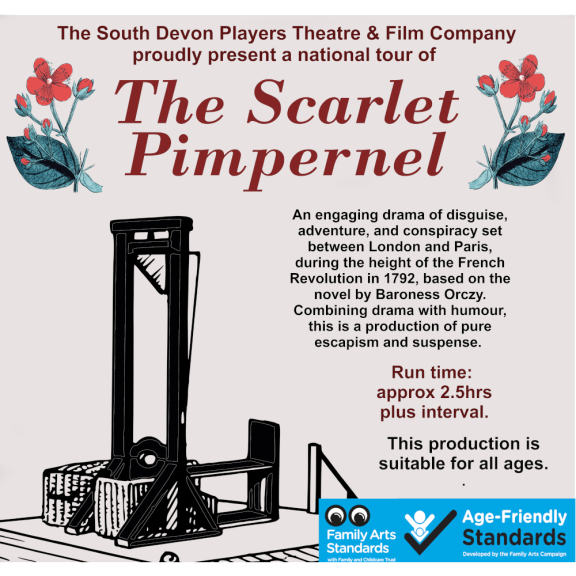 This theatre production combines adventure, and humour, and in a fast-moving, entertaining period drama based on the novel by Baroness Orczy and including wider historical and cultural research of the time. It features a stunning collection of roles for all actors involved. This play contains some horror elements, but is designed to be suitable for all ages.Performed as part of a tour (& global streaming) of this theatre production. by a professional touring theatre company from Devon, which has previously won national and international awards for their productions.