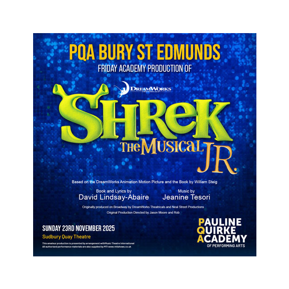 Once upon a time in a faraway swamp lived everyone’s favourite ogre, Shrek.He’s green, he’s mean and is on a quest to find the Princess.Shrek’s journey is full of adventures as he encounters familiar and colourful characters along the way.Our show is full of laughter, great songs and plenty of‘feel good’ messages performed by students of PQA Bury St Edmunds.Join us for a fun packed production showcasing a wonderfully talented cast, and ‘Let Your Freak Flag Fly’!