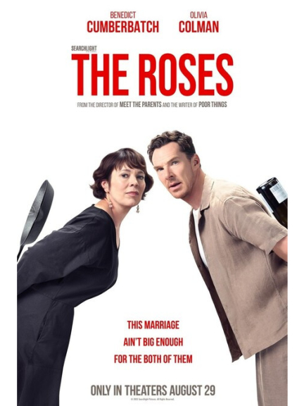 The Roses (15) The Roses is a satirical black comedy film. It is based on the 1981 novel The War of the Roses by Warren Adler. The film stars Benedict Cumberbatch and Olivia Colman as a successful couple whose seemingly picture-perfect marriage begins falling apart. Andy Samberg, Allison Janney, Ncuti Gatwa, and Kate McKinnon also star