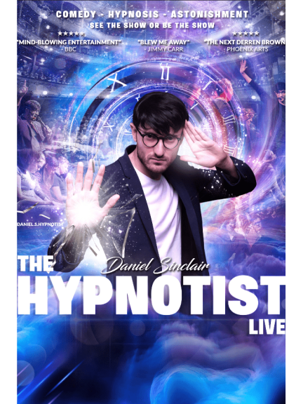 JOIN ONE OF THE UK’S TOP STAGE HYPNOTISTS & MIND READERS - DIRECT FROM LONDON’S WEST END   Blending truly jaw-dropping moments, comedy and music as Mind Hacker Daniel Sinclair takes you on the rollercoaster ride of your minds – leaving you laughing out loud while questioning your own realities.   SEE the show or be IN the show as volunteers’ imaginations are unlocked, realities are altered and minds read live on stage. Expect Derren Brown-style mind games, mind-bending predictions and unforgettable psychological wonder.   Prepare for the ultimate evening of amazement and laughter!   “The next Derren Brown” (Phoenix Arts) “Mind Blowing Entertainment” (BBC) “Blew me away” (Jimmy Carr)