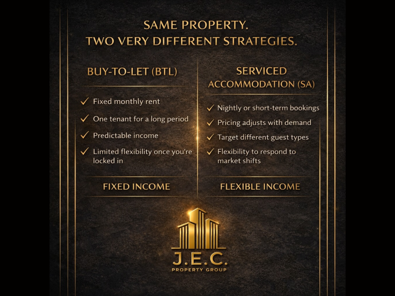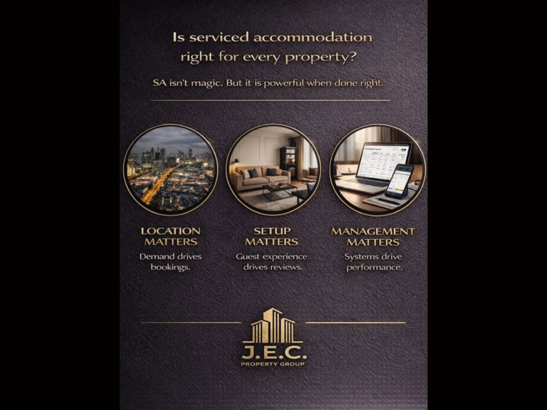 JEC Property Group is a forward-thinking property company specialising in hands-on property management, serviced accommodation, and property transformation. With a strong emphasis on professionalism, reliability, and care, the business works closely with landlords to turn property assets into consistently performing investments, while also creating high-quality, comfortable spaces for corporate clients and contractors.