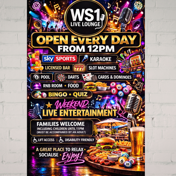 Whether you are looking for live entertainment in Walsall, somewhere to meet friends for a drink, or simply a lively evening out, WS1 Live Lounge offers a welcoming environment for everyone.