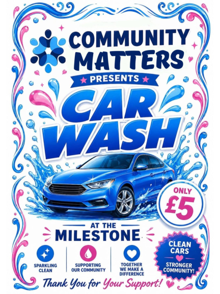 Community Matters present - their very own car wash on Sunday 10th May at the Milestone in Willenhall.