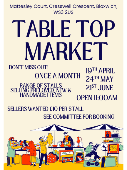Monthly tabletop market at Mattesley Court in Bloxwich