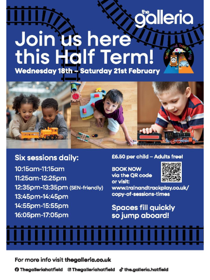 Anthony Greener, Retail Manager at The Galleria says: “We are thrilled to be welcoming back Train and Track Play to The Galleria this Half Term, after a hugely successful event with us last Summer. They offer fantastic play sessions with so many wonderful, interactive train and car toys to play with. We hope families will come along to get involved and make some lasting memories with their little ones this February.”