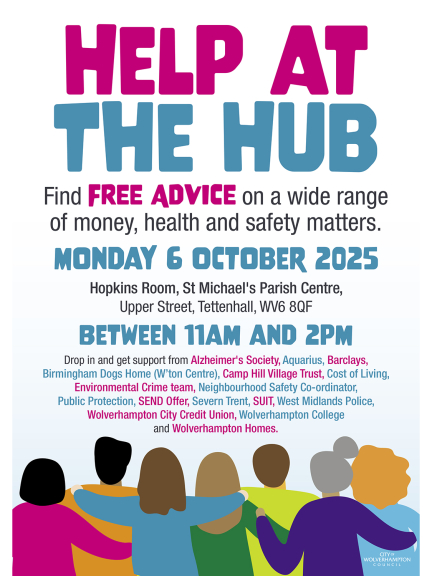 Help at the Hub will see a wide variety of city organisations offer advice and information. The event will take place on Monday, 6 October, from 11am-2pm, in the Hopkins Room, St Michael's Parish Centre, Upper Street, Tettenhall, WV6 8QF. The venue is next door to Tettenhall Library.