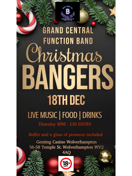 Join us for Christmas BANGERS with the Grand Central Function Band β a night packed with: